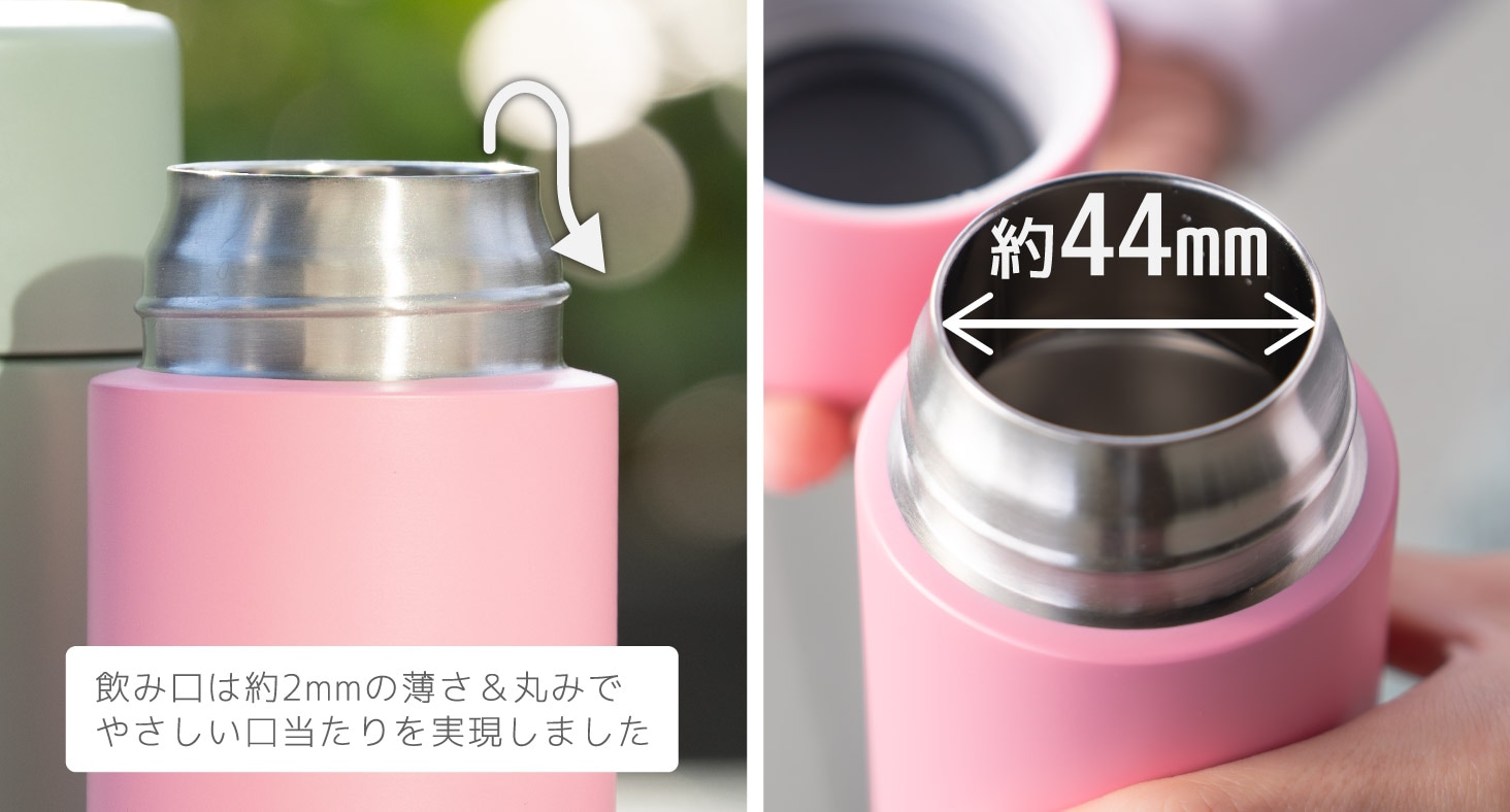 口当たりのいい飲み口は水切れが良く、カーブが唇にフィットして飲みものが垂れにくい形状。