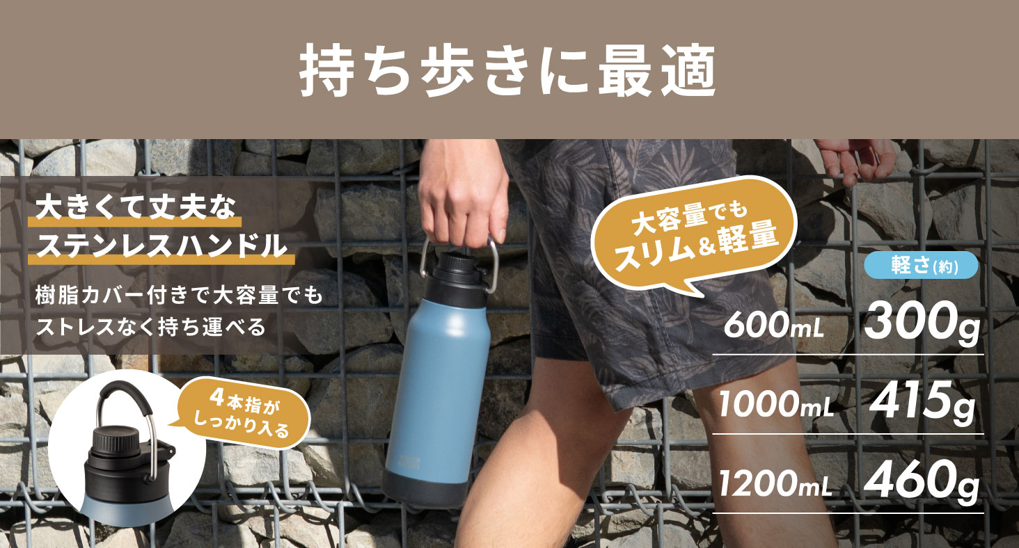 持ち歩きに最適なハンドル付きダイレクトボトル